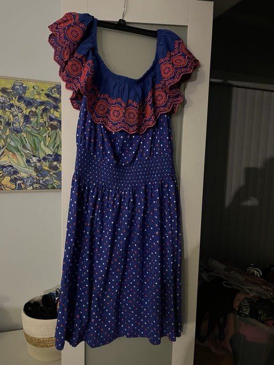 LILLY PULITZER BOREALIS BLUE LILLY SQUARED KALAMA OFF THE SHOULDER DRESS SZ L